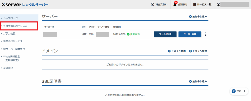 サーバー契約をした方は、独自ドメインを2つ無料で利用することができます。